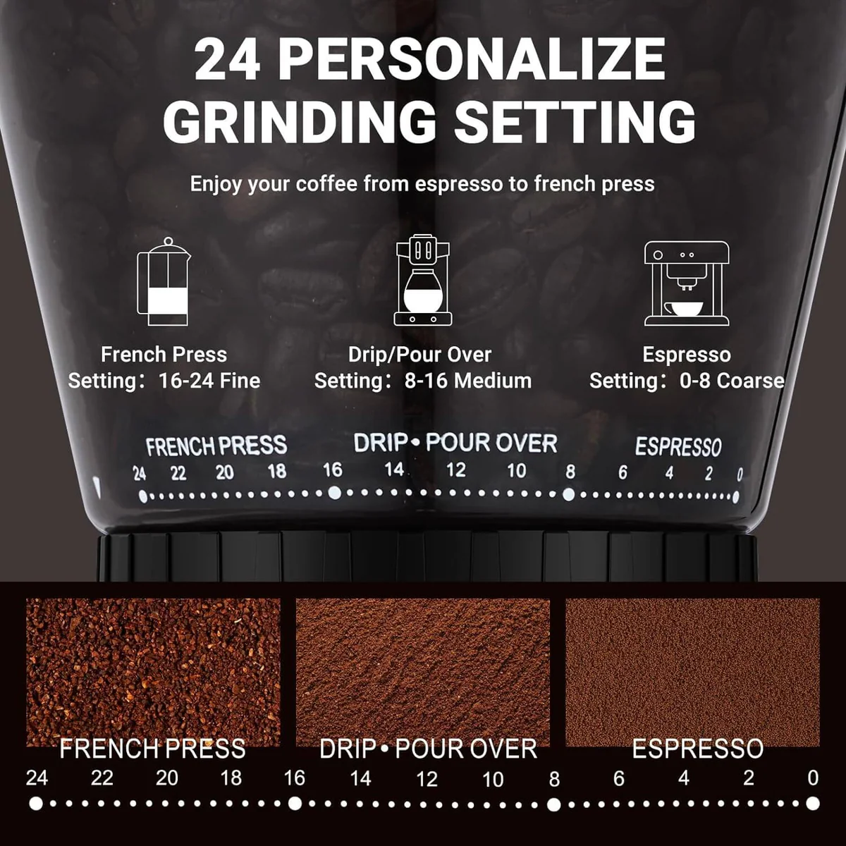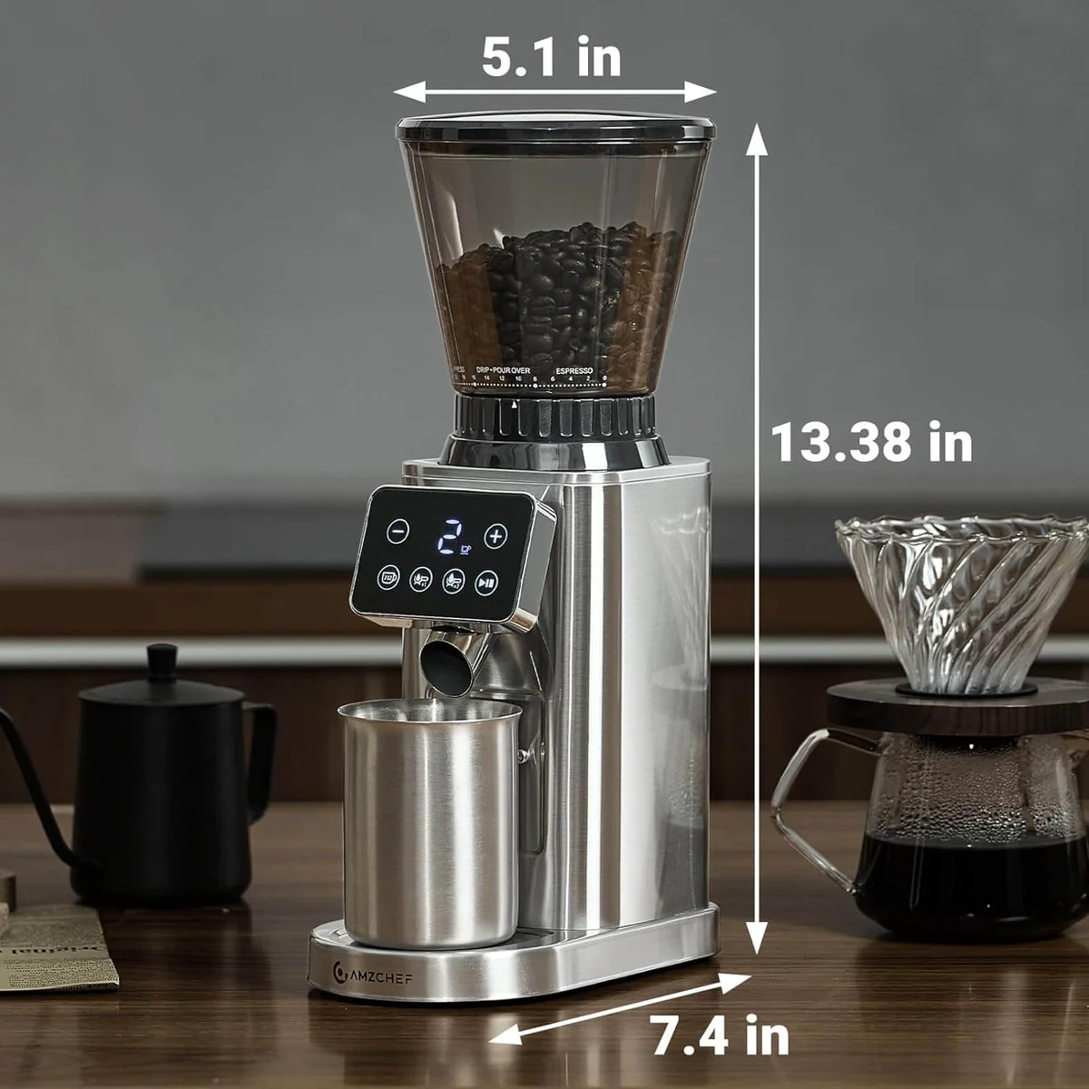 AMZCHEF Coffee Bean Grinder With Detachable Funnel Stand