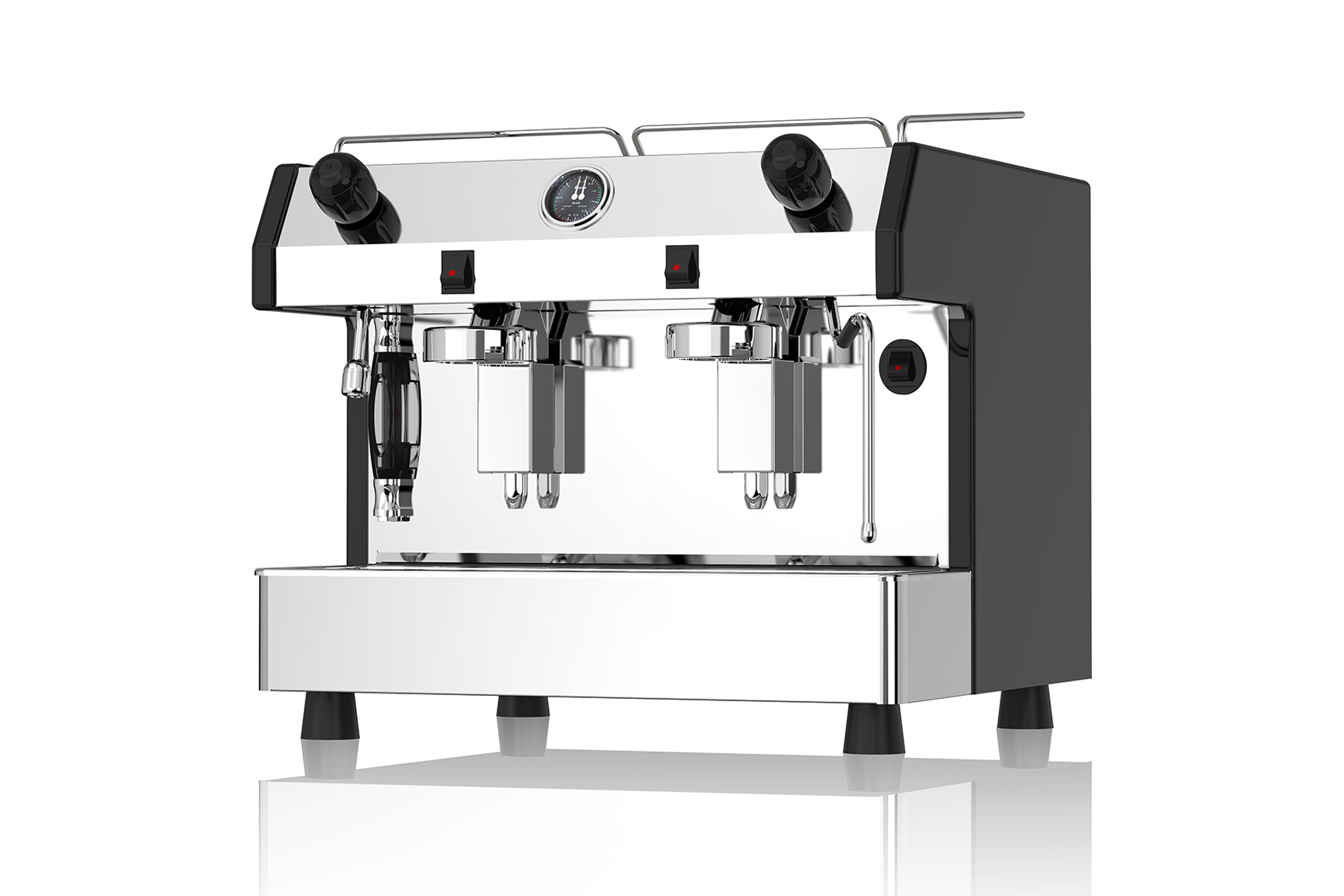 - 2 group models have 120 mm group height clearance to accommodate taller or take-out cups. 1 group models have standard 110mm clearance.