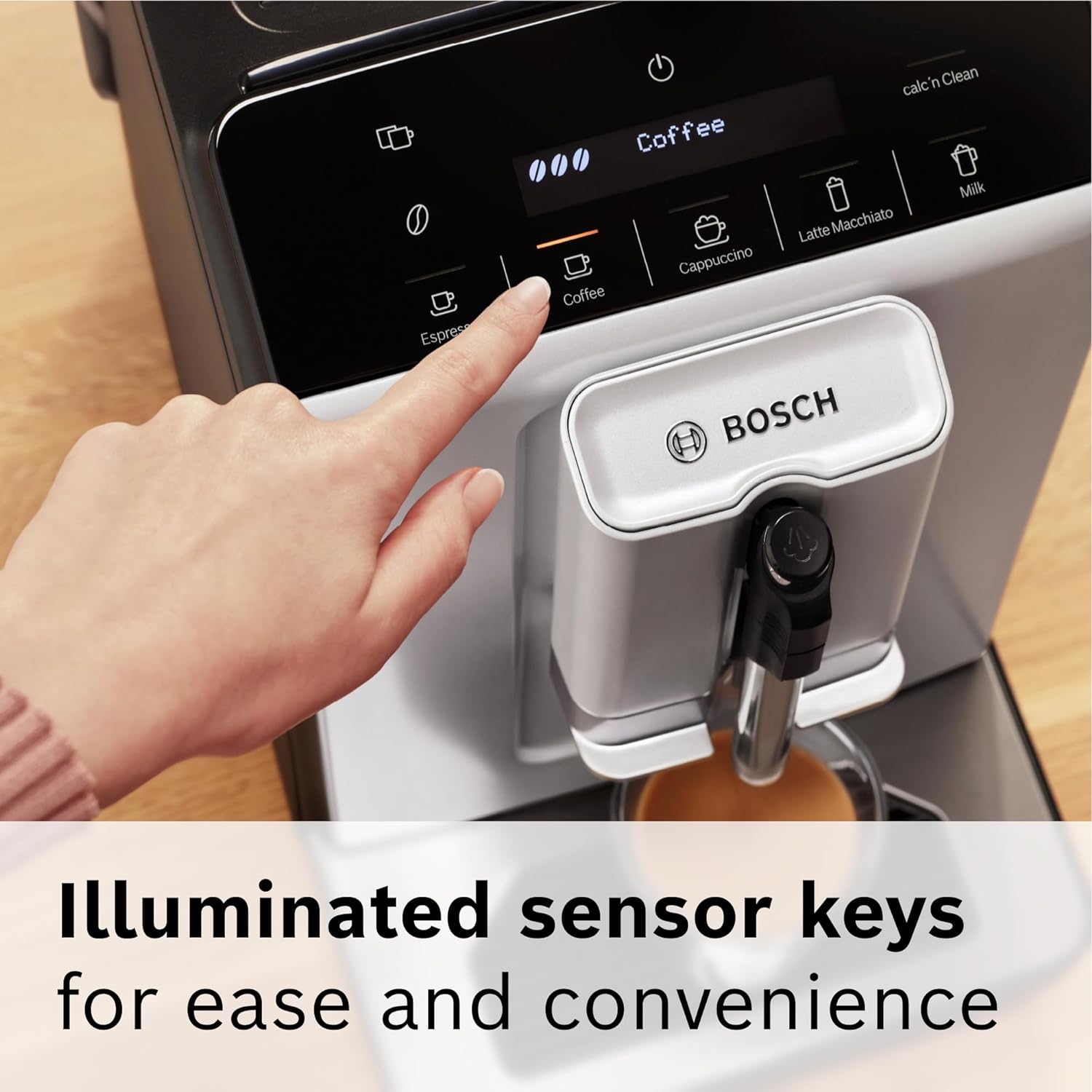 No more long searching for the right setting for your coffee! Whether you want a strong espresso, simple coffee, creamy cappuccino, tasty latte macchiato or milk, choose it on the Easy Select Panel. The illuminated sensor keys on the display make all functions easily accessible and user-friendly.