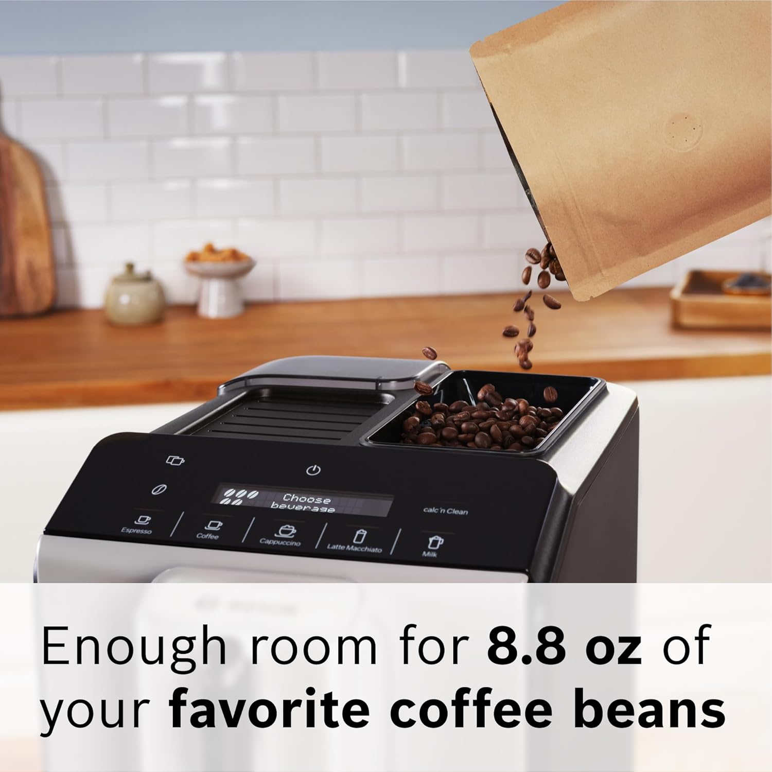 With Milk Express you can froth directly in the cup and get excellent milk foam. What’s more? Whether it’s a bold espresso, latte macchiato or creamy cappuccino or a simple black coffee, prepare every coffee and your favorite milk-based beverage effortlessly at the touch of a button. The Bosch 300 Series VeroCafe bean-to-cup machine prepares coffee and milk specialties automatically and seamlessly.