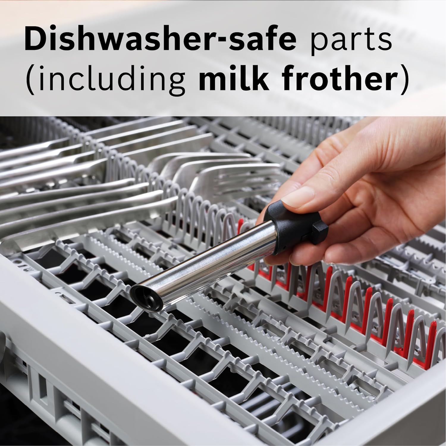 The dishwasher-safe frother and the easily accessible brewing unit on the appliance provide easy maintenance and cleaning.