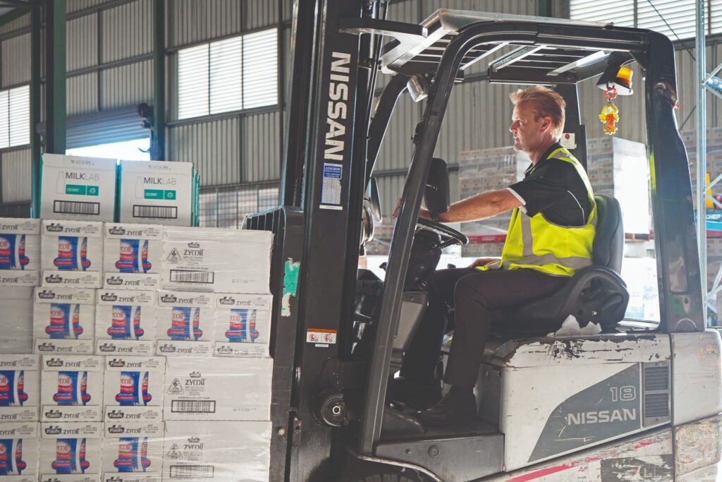 Once orders are placed, the Kelly’s Distributors warehouse springs into action with staff members getting involved to make sure delivery is completed as quickly as possible.
